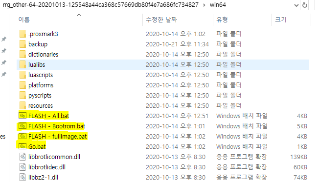 이 경우 FLASH - All.bat 파일이 아닌 Flash - Bootrom.bat 파일을 먼저 실행하여 부트로더 설치가